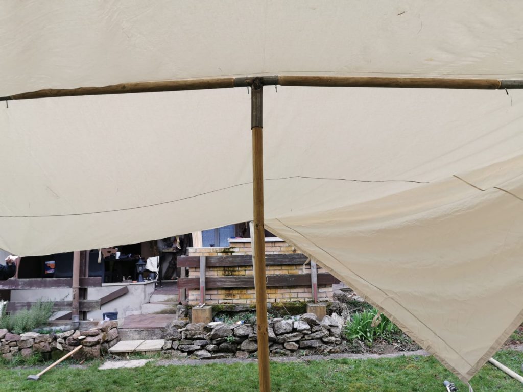 Zu den Aktivitäten der Gruppe gehört es auch, sich in den Wintermonaten* zu treffen um neue Ausrüstung und Gebrauchsgegenstände herzustellen. Da die Gruppe sich ja erst Ende 2019 neu zusammen gefunden hat steht mit an erster Stelle das ein neues Sonnensegeln benötigt wird – sozusagen das gemeinsame „Wohnzimmer“ für die Lagerwochenenden.